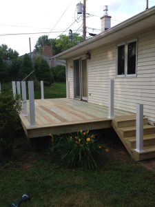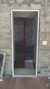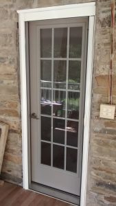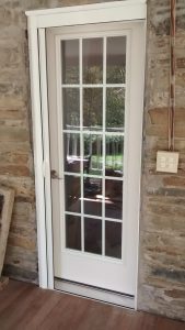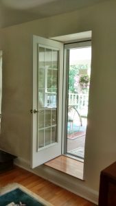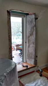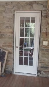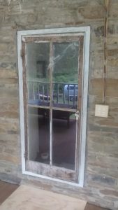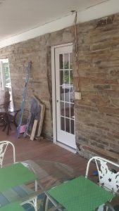 This was a stone house in Elmira that was built at the same time the Elmira reformatory was being erected. It was the Warden’s house and was made with the same stone as the prison itself was. The walls were about two feet thick and they were not flat, or plumb. The current owners were using an old window to get onto the upper level deck and I removed that window and installed a door for them.