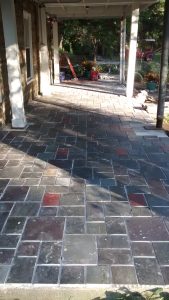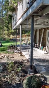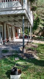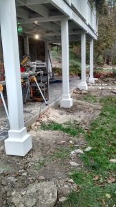 I installed a slate tile front patio which was located underneath an upper deck area. The front post that were supporting that upper deck were located on the slab below, that needed to be tiled. I discovered that the slab was cracking under each post due to the weight of the deck above, which also included a very large hot tub. The slab wasn’t designed thick enough to support that kind of weight, so I was able to relocate the post off of the slab and on to concrete piers located in the front yard.